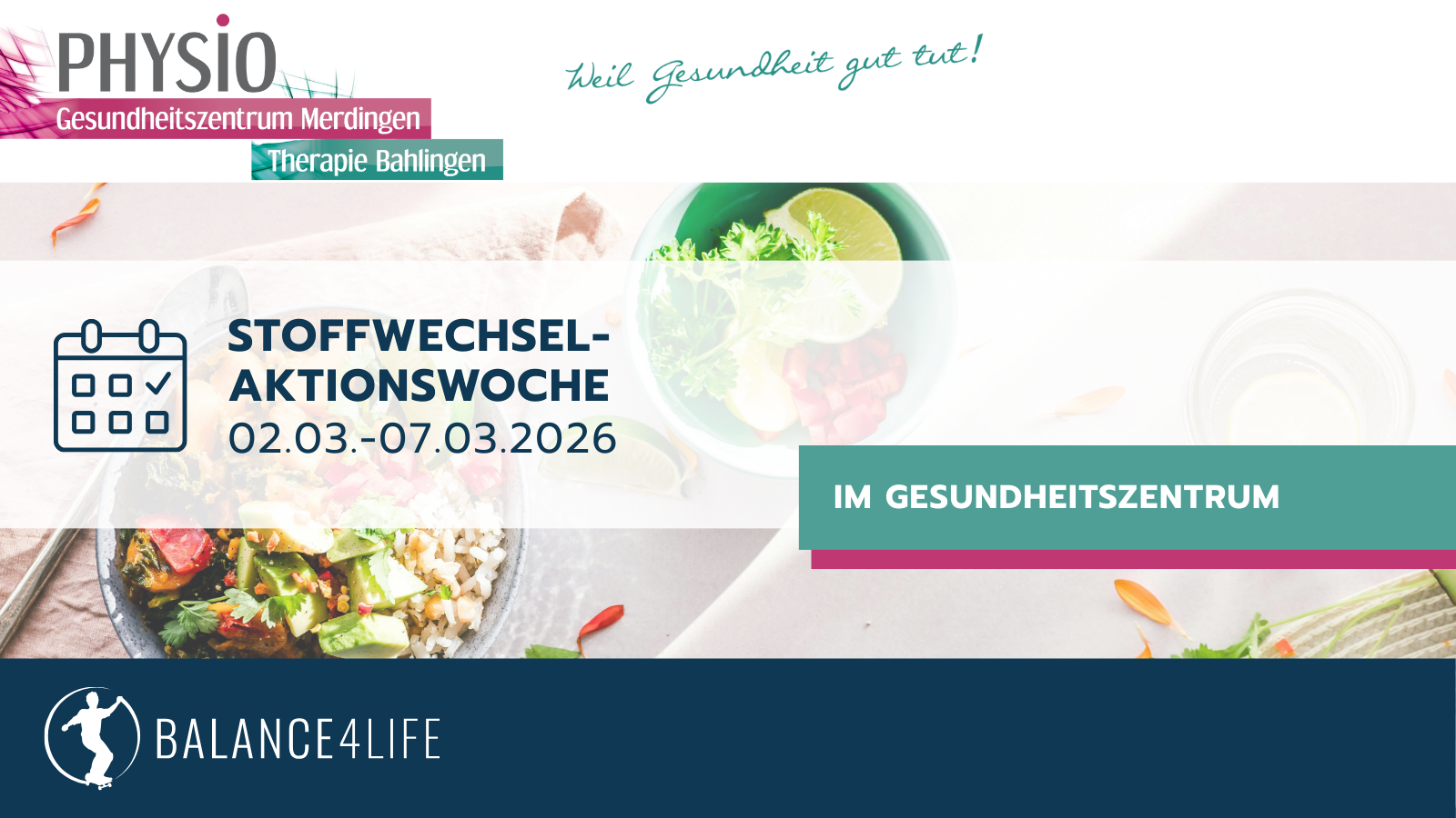 Passend zur Fastenzeit laden BALANCE4LIFE und das Gesundheitszentrum Merdingen zu einem Vortrag rund um das Thema metabolische Gesundheit ein.